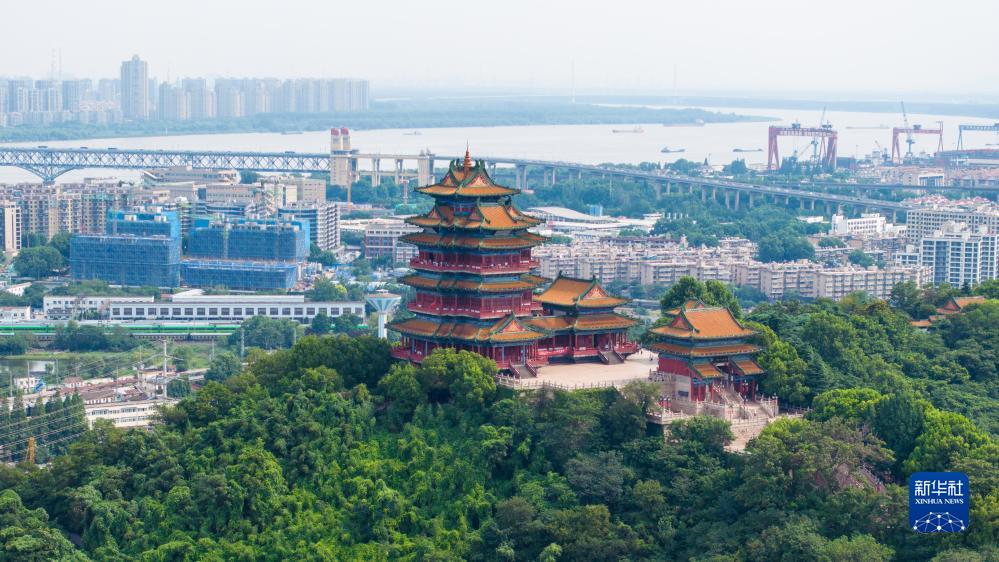 這是南京閱江樓(無(wú)人機照片,7月12日攝)。