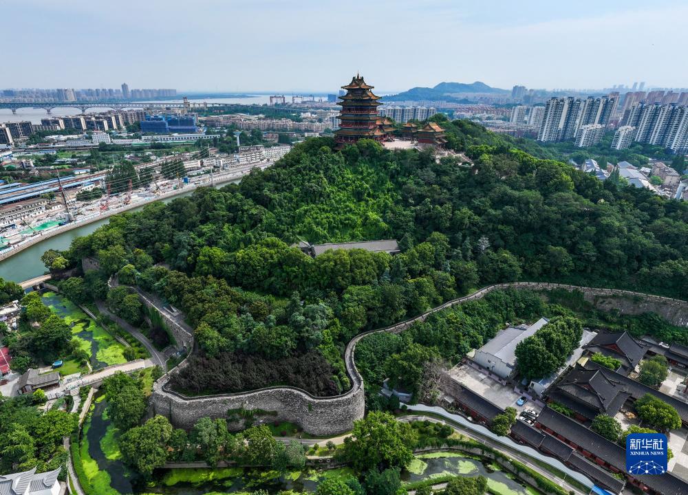 這是南京閱江樓(無(wú)人機照片,7月12日攝)。