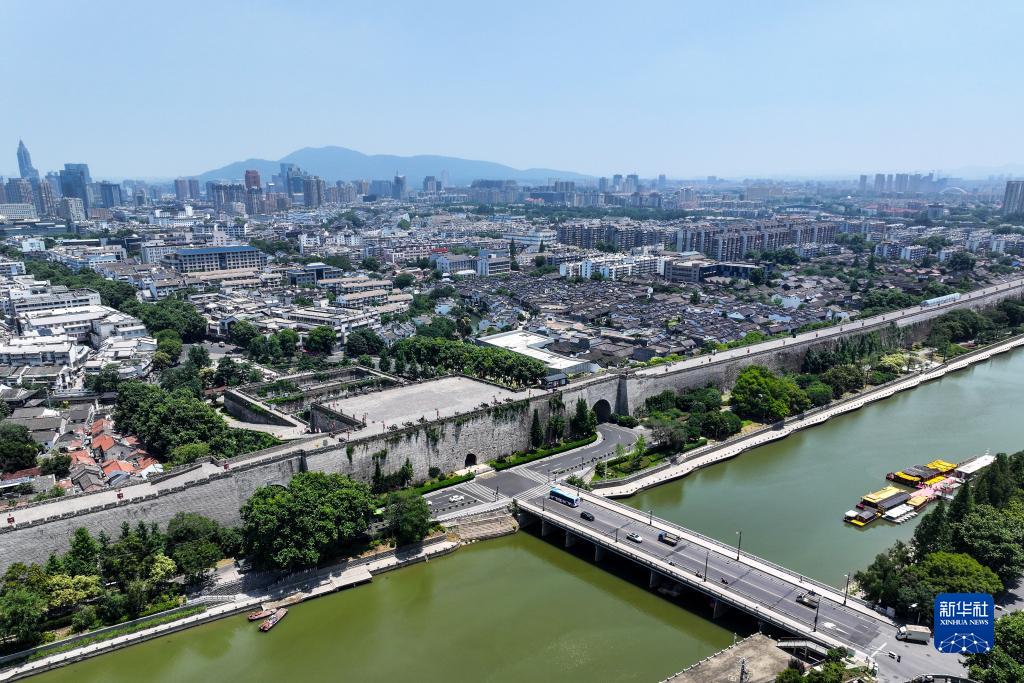 南京中華門(mén)城堡與秦淮河景色(無(wú)人機照片,6月9日攝)。