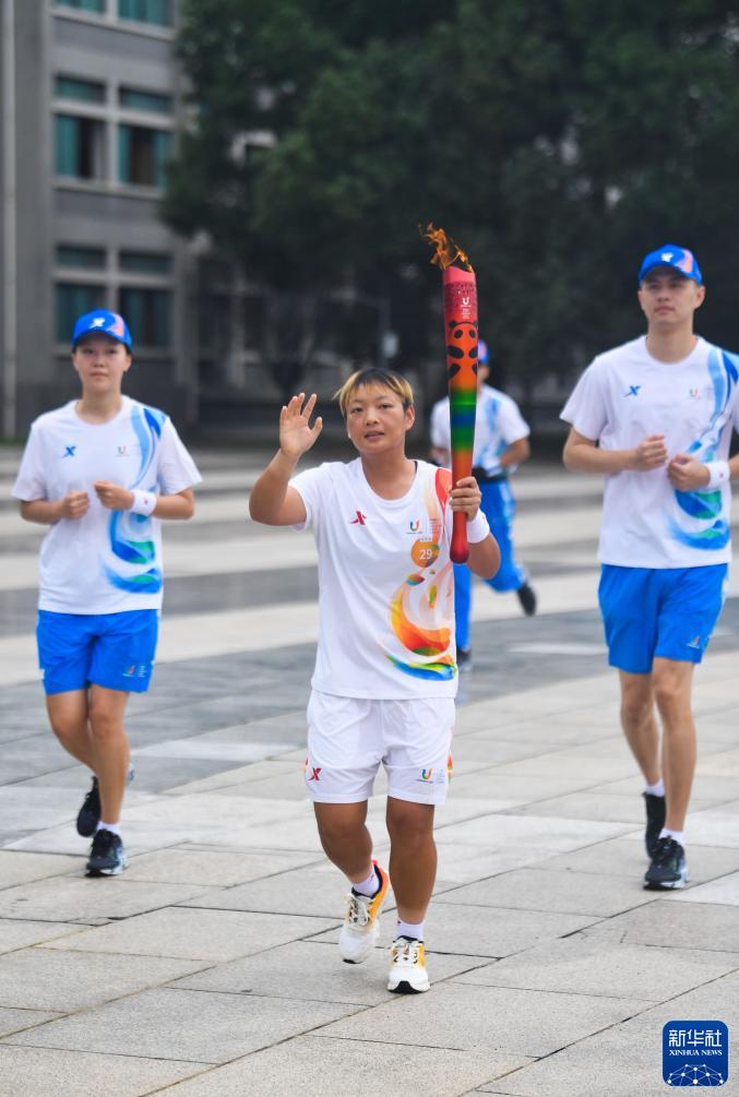 當日,成都第31屆世界大學(xué)生夏季運動(dòng)會(huì )火炬傳遞在西南財經(jīng)大學(xué)(柳林校區)校園內舉行。