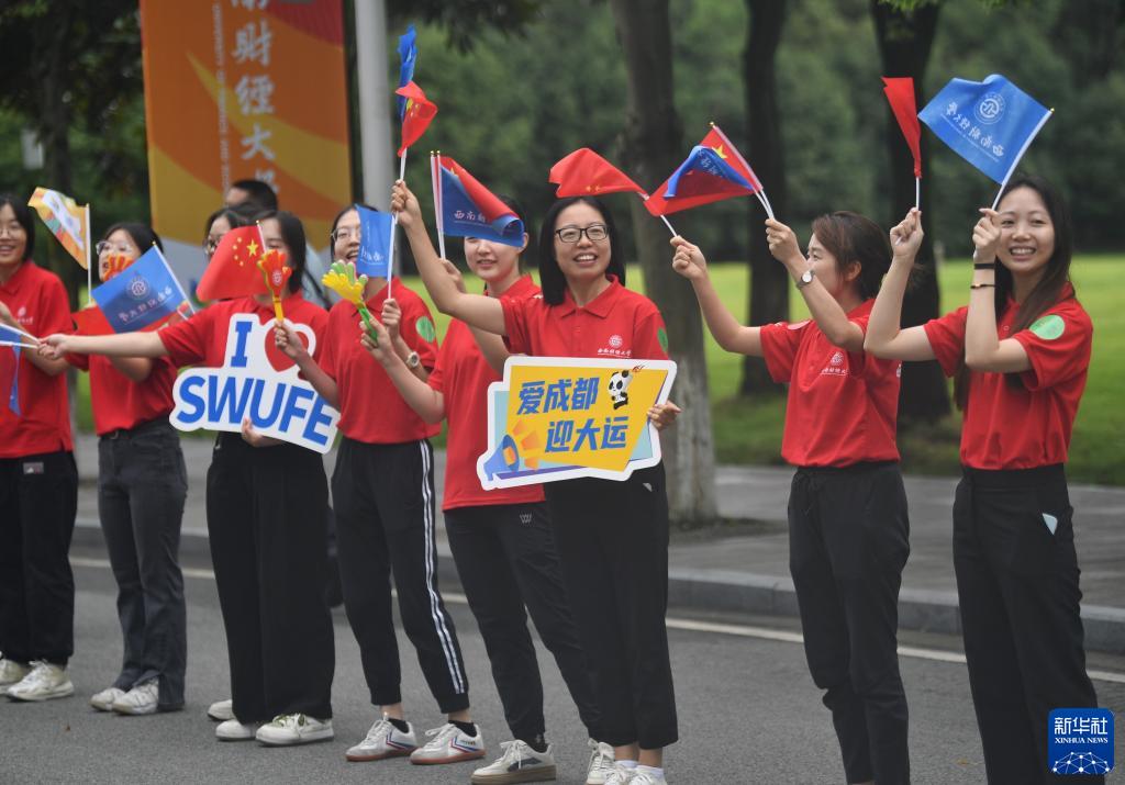 當日,成都第31屆世界大學(xué)生夏季運動(dòng)會(huì )火炬傳遞在西南財經(jīng)大學(xué)(柳林校區)校園內舉行。