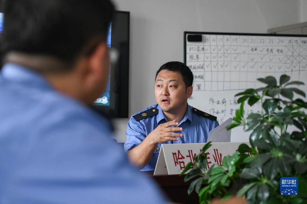 7月13日,在哈爾濱通信段哈北通信車(chē)間,魏巍在工隊班前布置會(huì )上進(jìn)行職責分工。