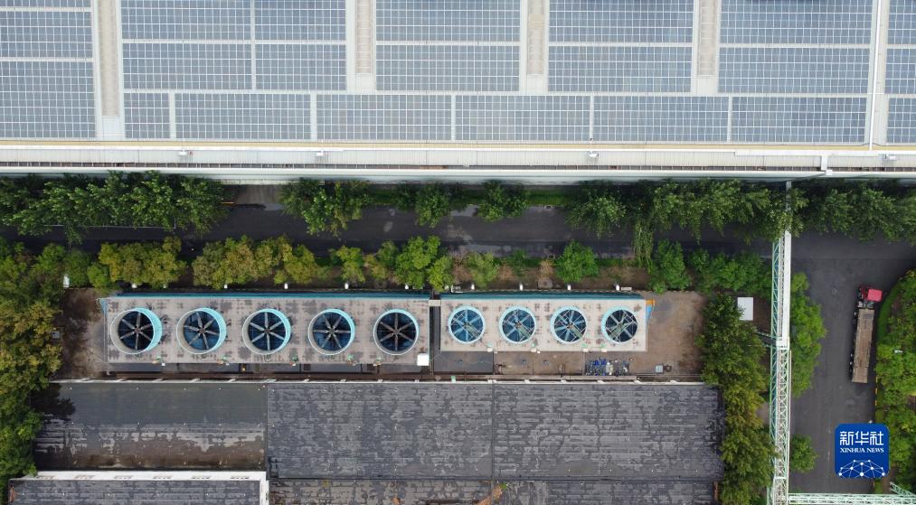 天津市新天鋼鋼鐵集團有限公司廠(chǎng)區屋頂安裝有太陽(yáng)能光伏板(7月12日攝,無(wú)人機照片)。