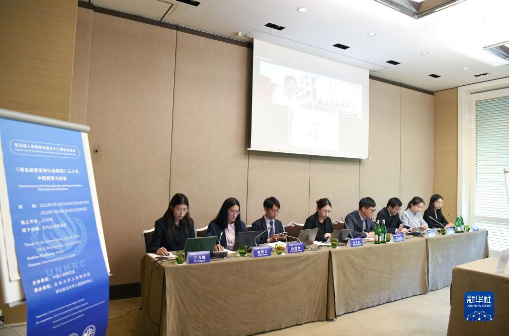 在聯(lián)合國人權理事會(huì )第53屆會(huì )議期間,中國人權研究會(huì )14日在日內瓦舉辦“《維也納宣言和行動(dòng)綱領(lǐng)》三十年:中國探索與經(jīng)驗”主題邊會(huì )。人權領(lǐng)域專(zhuān)家學(xué)者就宣言和行動(dòng)綱領(lǐng)的中國實(shí)踐、生存權與發(fā)展權理念、人權國際合作以及少數群體權利保障等議題展開(kāi)研討。