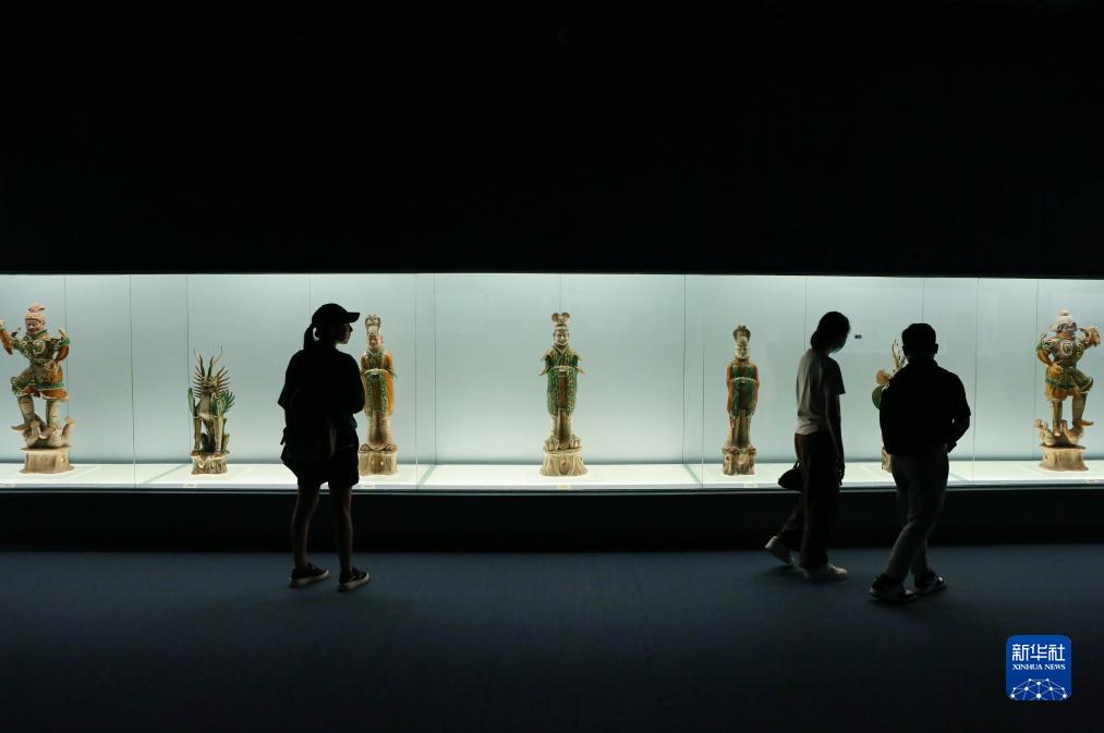 7月14日晚,參觀(guān)者在上海博物館的中國古代陶瓷館觀(guān)看展品。