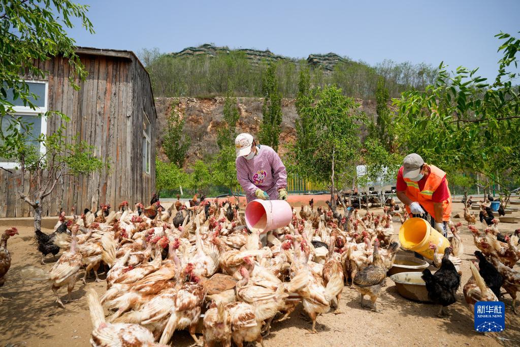 7月14日,工人在河北省唐山市古冶區一處修復礦山后建成的養殖場(chǎng)內工作。