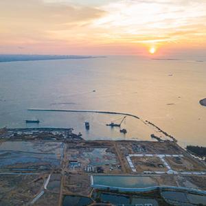 7月14日拍攝的建設中的文昌鋪前中心漁港項目(無(wú)人機照片)。