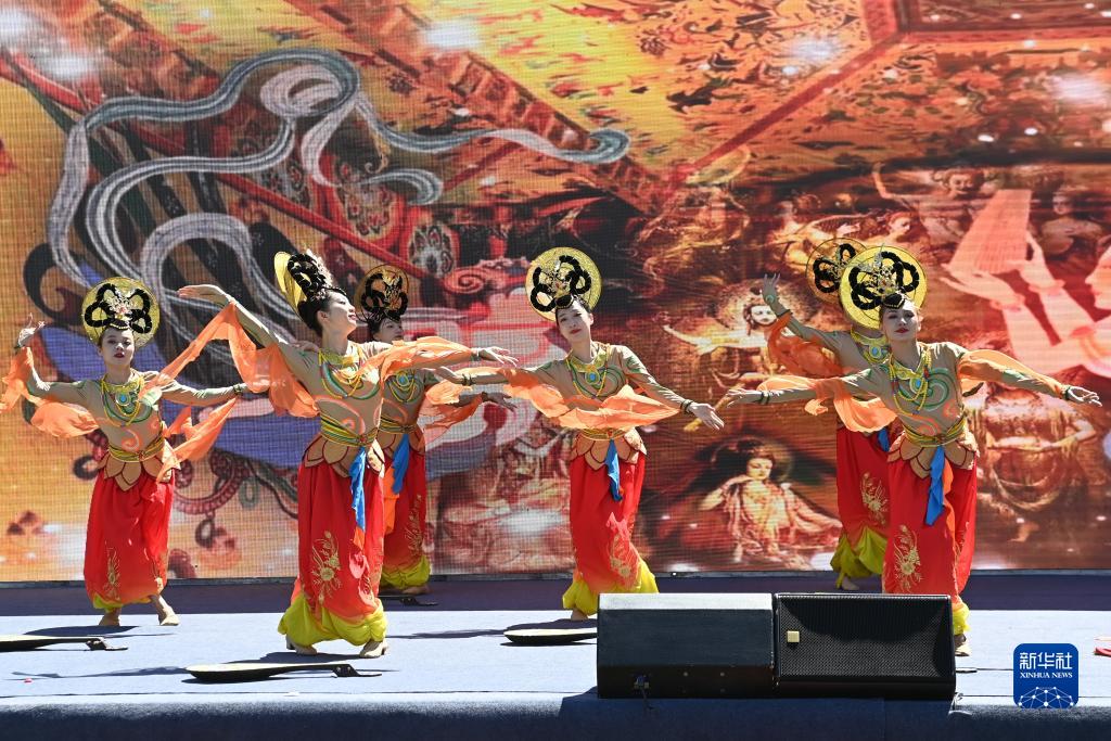7月15日,在第十屆蘭州百合文化旅游季活動(dòng)開(kāi)幕式上,演員表演舞蹈。