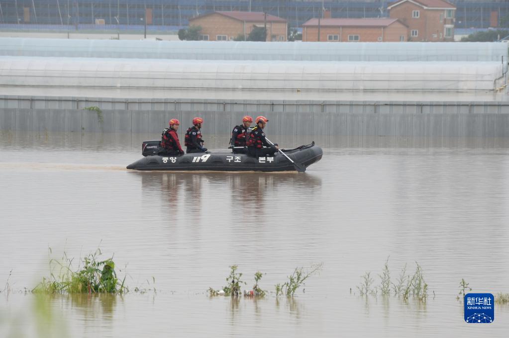 7月15日,在韓國忠清北道清州市,警察和消防人員進(jìn)行搜救工作。