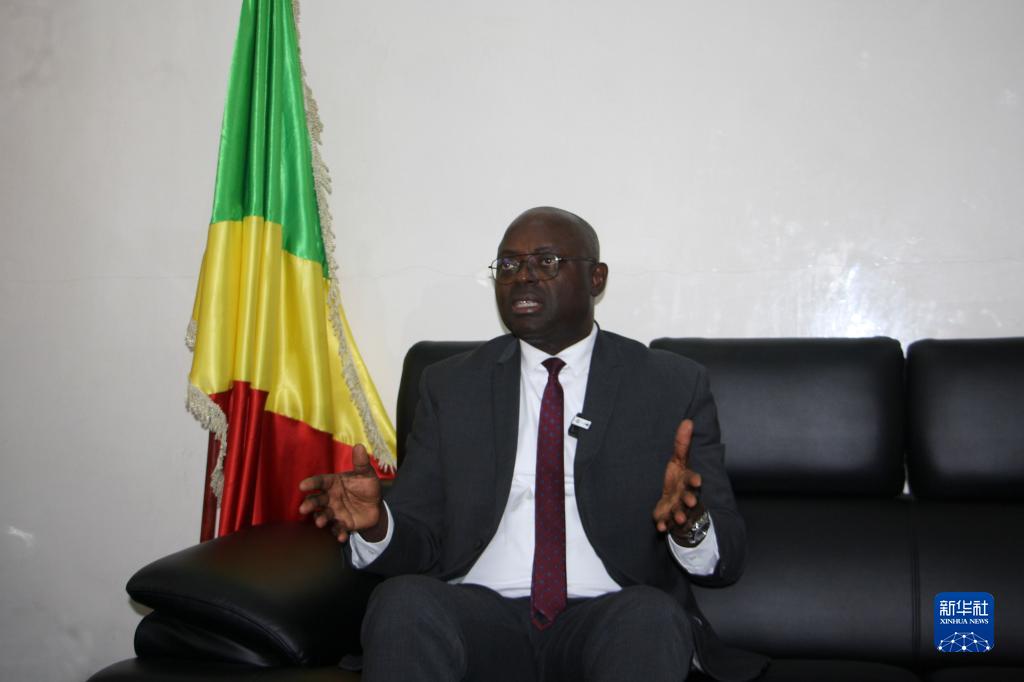 7月13日,在剛果(布)首都布拉柴維爾,剛果(布)農業(yè)、畜牧業(yè)和漁業(yè)部長(cháng)保羅·瓦朗坦·恩戈博接受新華社記者采訪(fǎng)。