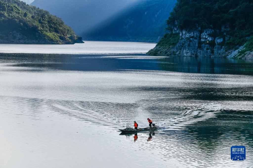7月10日,盧錫永、冉茂英夫婦駕駛小船在烏江上打撈漂浮物。
