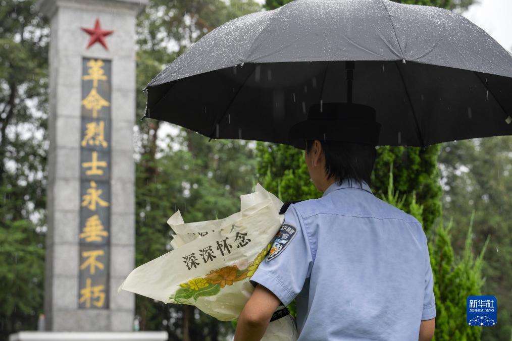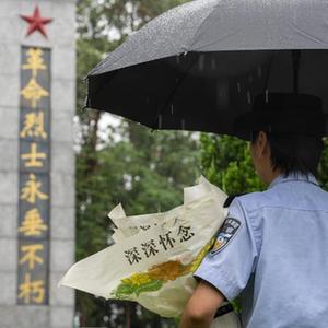 雨中,一把黑傘,一束白花,一身警服的尹銘燕拾級而上,走向云南德宏州隴川縣烈士陵園的最高處,那里長(cháng)眠著(zhù)她的哥哥尹銘志。