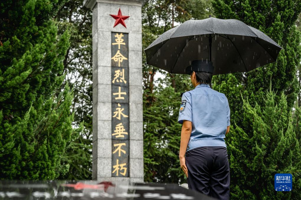 雨中,一把黑傘,一束白花,一身警服的尹銘燕拾級而上,走向云南德宏州隴川縣烈士陵園的最高處,那里長(cháng)眠著(zhù)她的哥哥尹銘志。