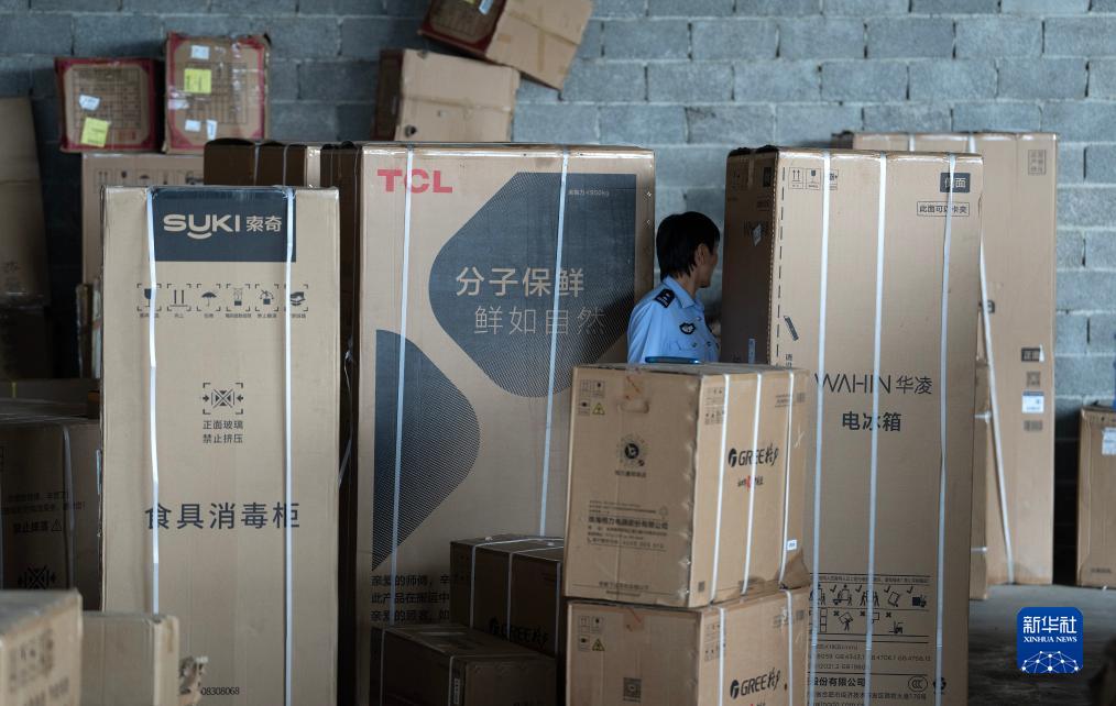 7月12日,尹銘燕在芒市一處物流點(diǎn)對快遞貨品進(jìn)行查緝。