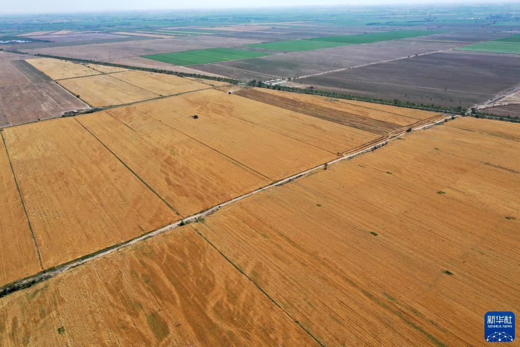 這是7月15日在新疆呼圖壁縣二十里店鎮寧州戶(hù)村拍攝的麥田(無(wú)人機照片)。