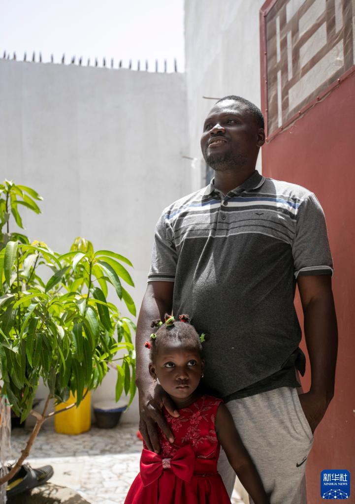 5月13日,蘇信和女兒在塞內加爾捷斯的家中。新華社記者 李亞輝 攝