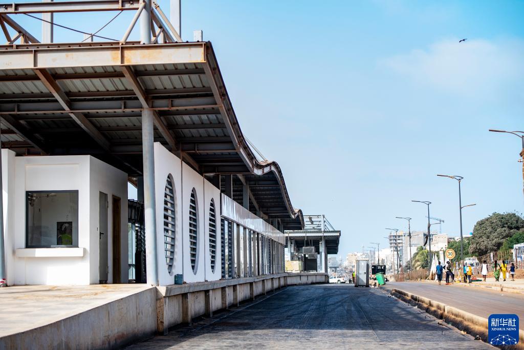這是5月13日在塞內加爾首都達喀爾拍攝的建設中的一座達喀爾快速公交項目的車(chē)站。新華社記者 李亞輝 攝