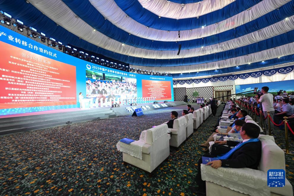 7月16日拍攝的2023中國產(chǎn)業(yè)轉移發(fā)展對接活動(dòng)(內蒙古)開(kāi)幕式暨簽約儀式。