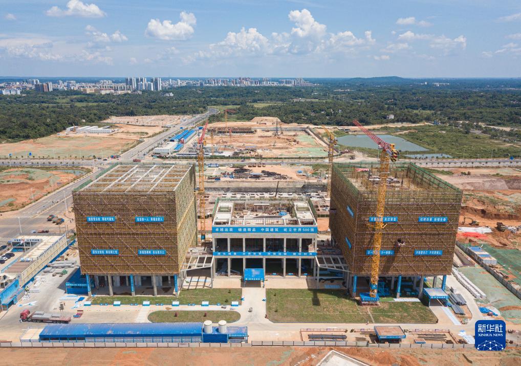 7月15日在海南文昌國際航天城拍攝的建設中的遙感衛星項目(無(wú)人機照片)。