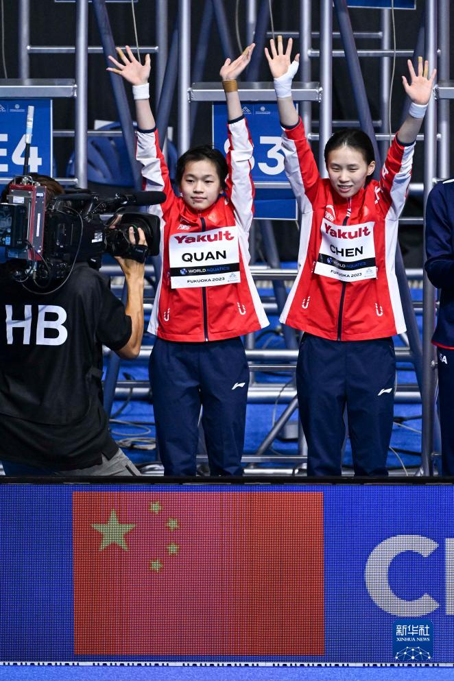 當日,在日本福岡舉行的2023年福岡世界游泳錦標賽跳水女子雙人10米臺決賽中,中國組合陳芋汐/全紅嬋以369.84分的總成績(jì)奪得冠軍。