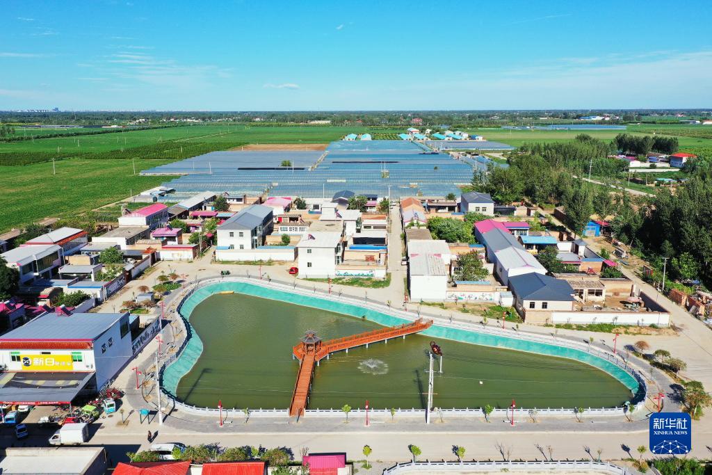 河北省涿州市高官莊鎮上莊村由垃圾坑塘經(jīng)過(guò)治理建成的游園(7月16日攝,無(wú)人機照片)。