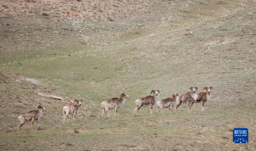 6月30日,在新疆阿爾金山國家級自然保護區,西藏盤(pán)羊在山上眺望。