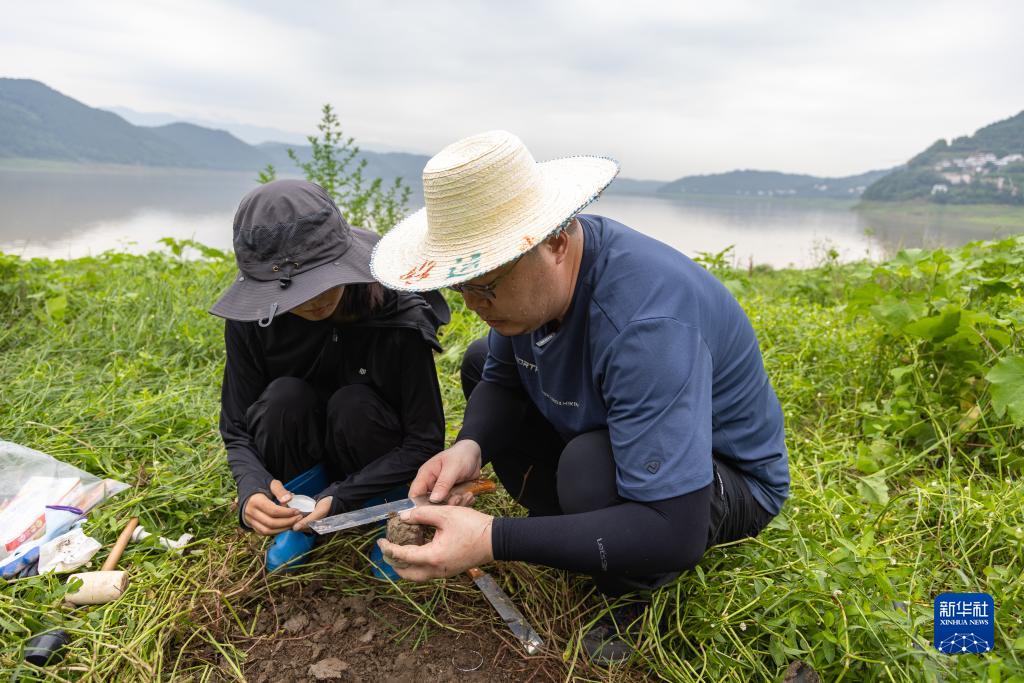 在重慶市忠縣,中國科學(xué)院成都山地所副研究員鮑玉海(右)帶領(lǐng)團隊在三峽水庫消落帶采集土壤環(huán)刀樣品(7月6日攝)。