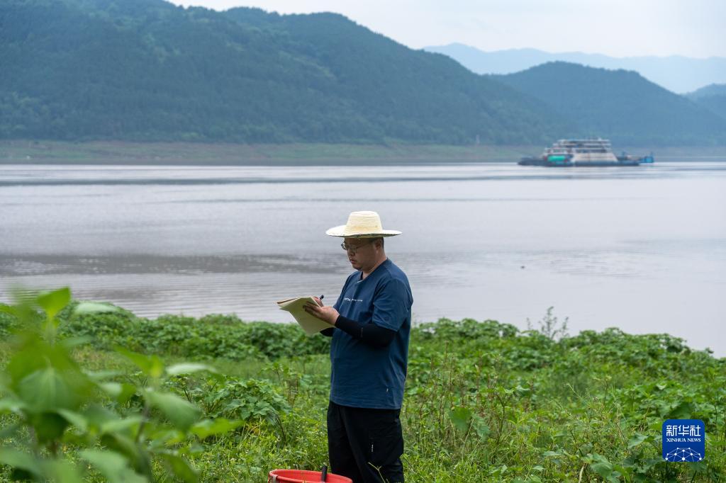 在重慶市忠縣,中國科學(xué)院成都山地所副研究員鮑玉海在三峽水庫消落帶開(kāi)展相關(guān)監測(7月6日攝)。