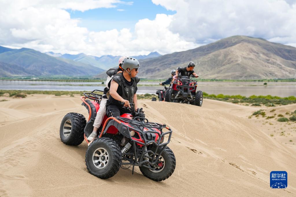 在扎囊沙漠公園,游客在體驗沙地摩托車(chē)(7月16日攝)。