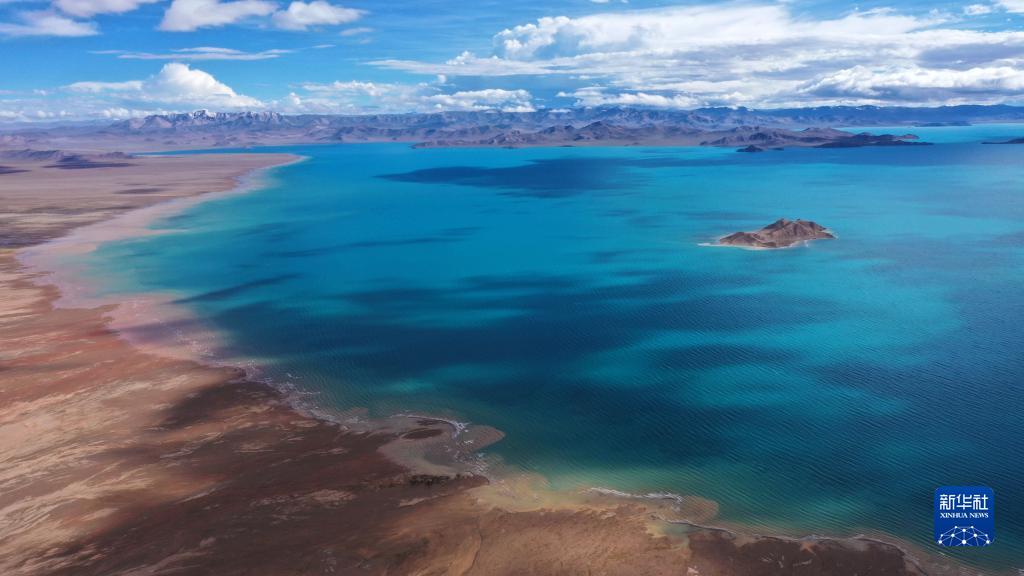 7月10日在新疆阿爾金山國家級自然保護區拍攝的阿其克湖(無(wú)人機照片)。