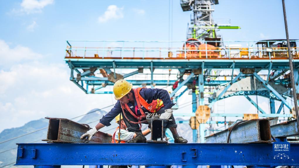 貴州公路集團工人在納晴高速牂牁江大橋施工(6月25日攝)。