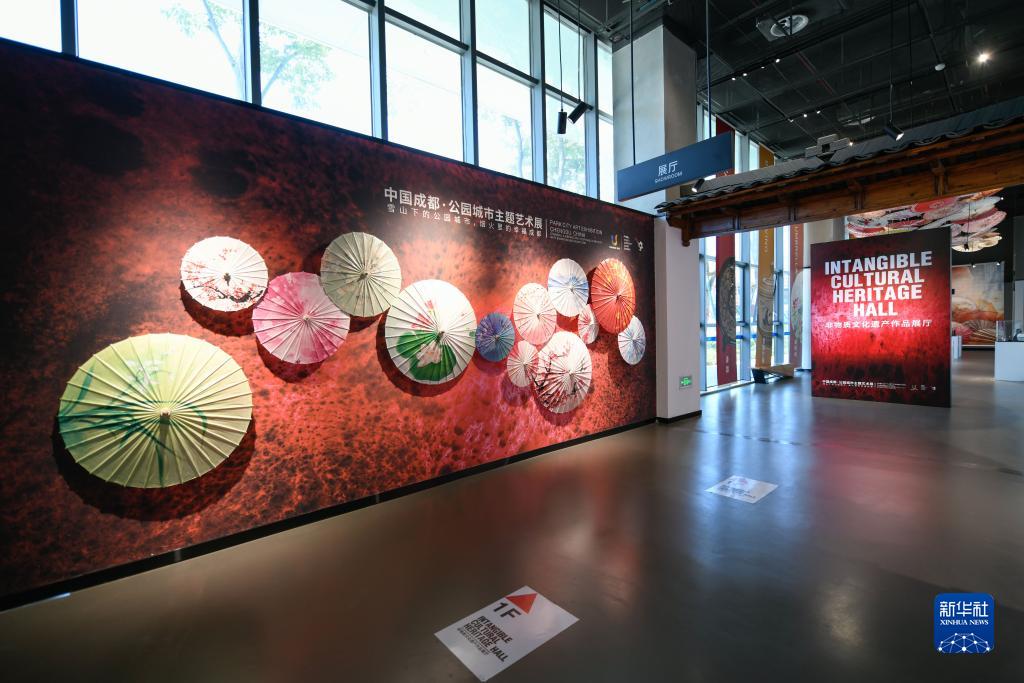 這是7月16日在大運村展覽中心內拍攝的“中國成都·公園城市主題藝術(shù)展”一角。