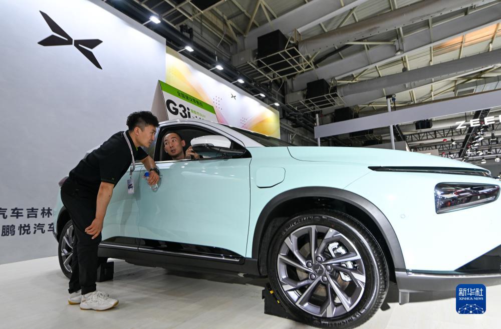 7月17日,一名參觀(guān)者在長(cháng)春汽博會(huì )小鵬汽車(chē)品牌展區體驗一款汽車(chē)。