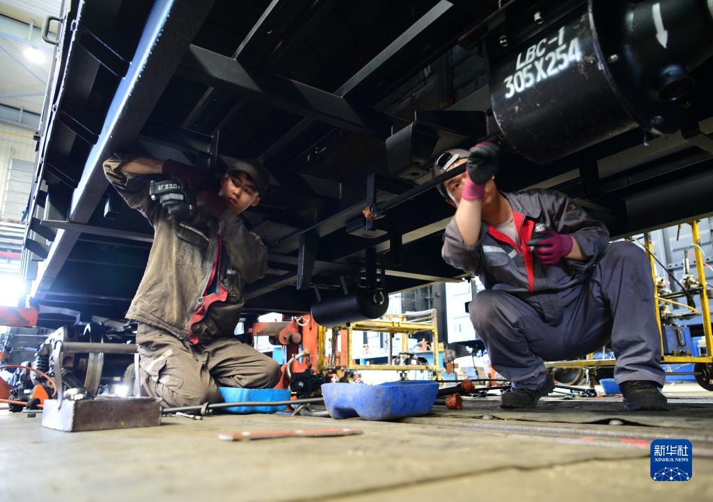 7月17日,中車(chē)齊車(chē)集團石家莊公司的工人在總裝車(chē)間工作。