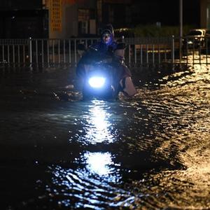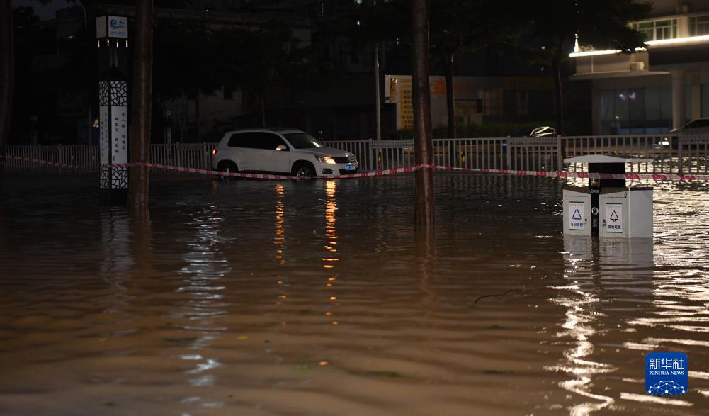 7月17日晚,在廣東湛江海濱大道北,車(chē)輛由于道路積水被困。