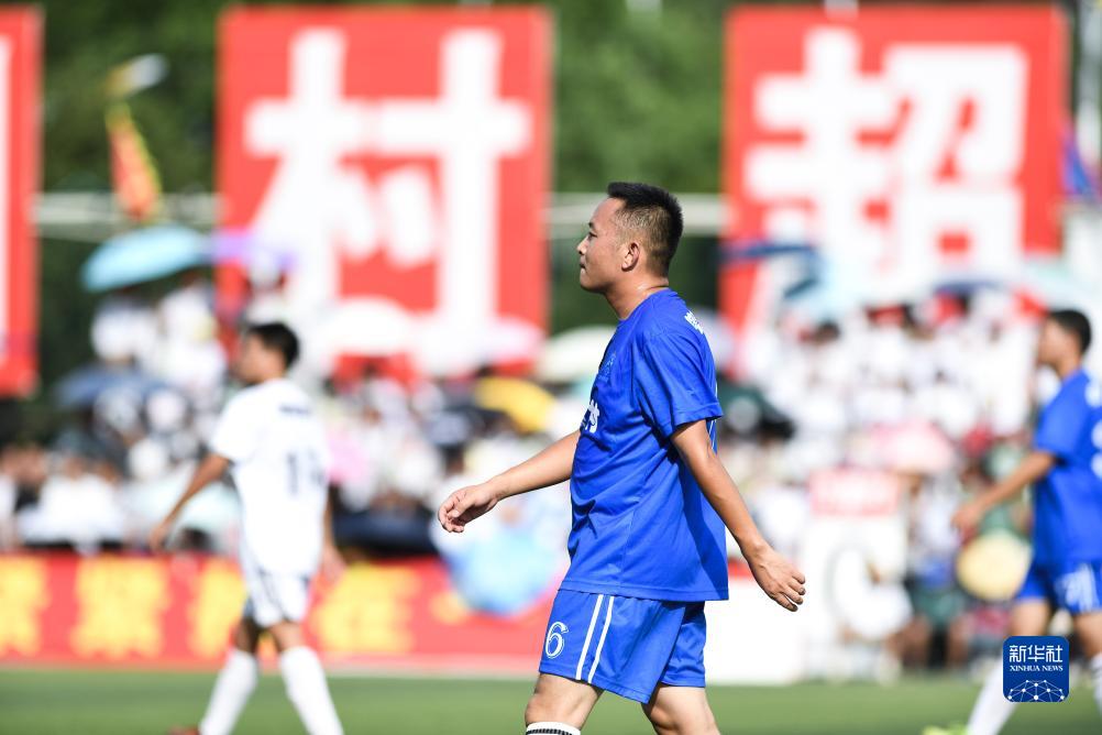 7月15日,月寨村足球隊球員李遠攀(前)在賽場(chǎng)上。