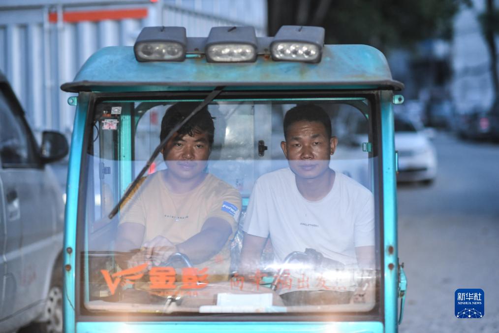 7月15日,豐樂(lè )村一隊球員賈勇輝(右)與朋友駕駛三輪車(chē)在給客戶(hù)送豆芽途中。