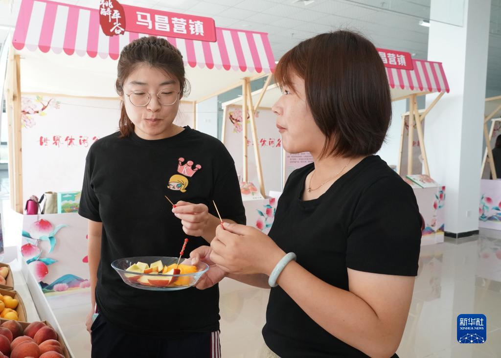 7月18日,觀(guān)眾在2023北京·平谷鮮桃季“土特產(chǎn)”市集現場(chǎng)品嘗桃子。