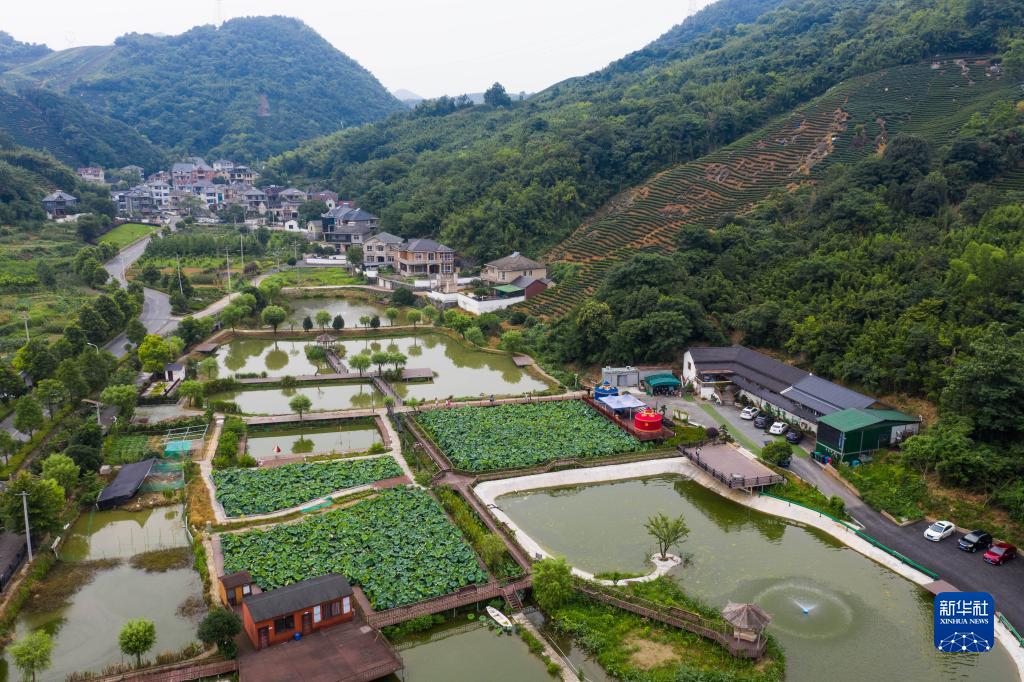 7月18日拍攝的杭州富陽(yáng)廣吉生態(tài)農業(yè)基地(無(wú)人機照片)。位于杭州市富陽(yáng)區銀湖街道坑西村的廣吉生態(tài)農業(yè)基地是由回歸的新鄉賢創(chuàng )辦,是一家集水產(chǎn)養殖、垂釣、餐飲、觀(guān)光于一體的農文旅休閑產(chǎn)業(yè)基地。