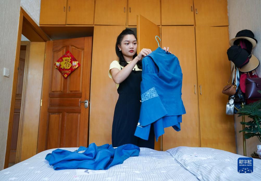 依波逢在位于昆明的住處整理工作服(7月15日攝)。