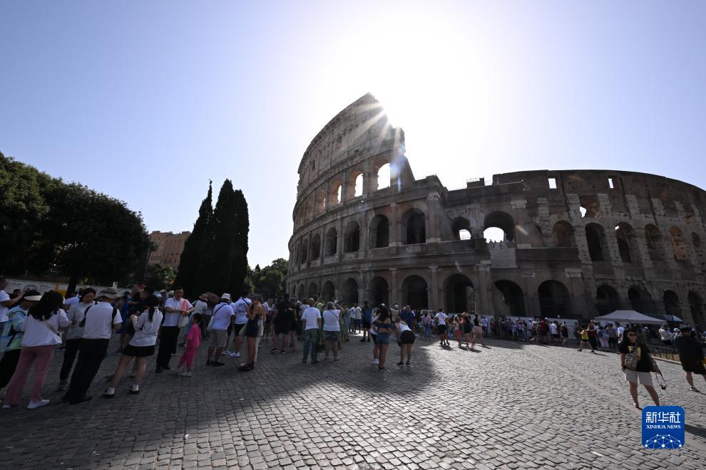 7月18日,游客聚集在意大利羅馬斗獸場(chǎng)附近。