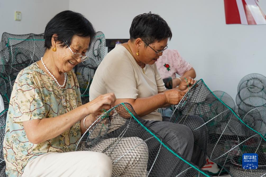 7月18日,棣豐街道賈店村居民在微工廠(chǎng)內加工漁籠。