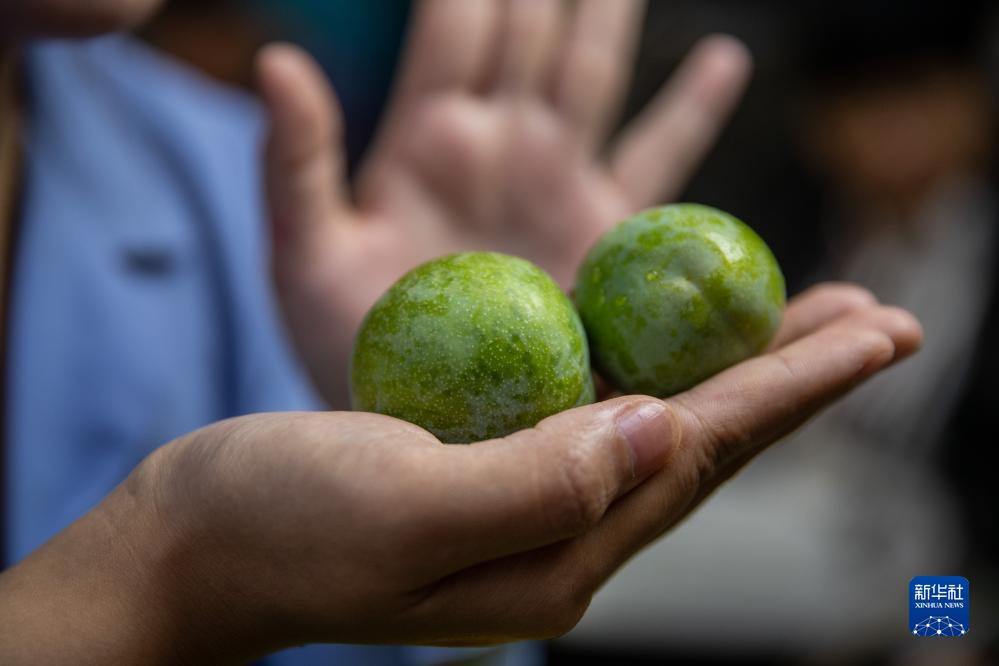 6月30日,在重慶市巫山縣曲尺鄉柑園村,主播劉嘉陵在網(wǎng)絡(luò )直播中展示并介紹巫山脆李。