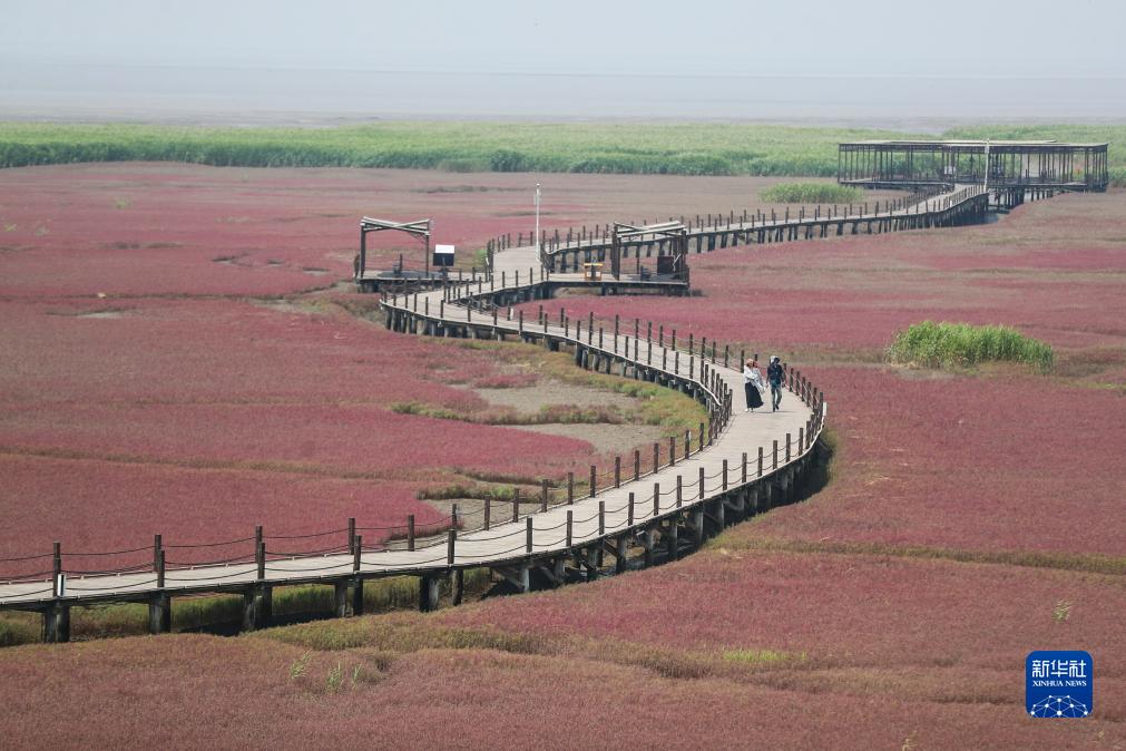 據了解,近幾年,為持續強化濕地保護和生態(tài)修復,紅海灘國家風(fēng)景廊道聯(lián)合專(zhuān)業(yè)科研院所積極組織實(shí)施堿蓬草修復工程,景區內堿蓬草的覆蓋面積從2018年的2000畝提高到目前的2.5萬(wàn)畝。