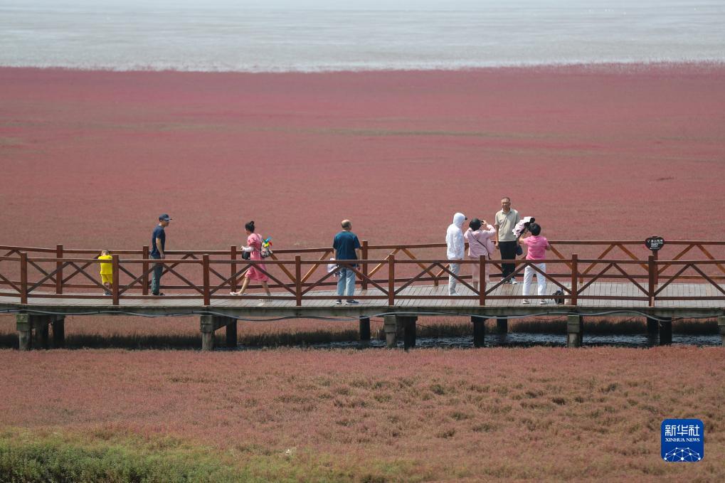 7月19日,游客在紅海灘國家風(fēng)景廊道景區內游玩。