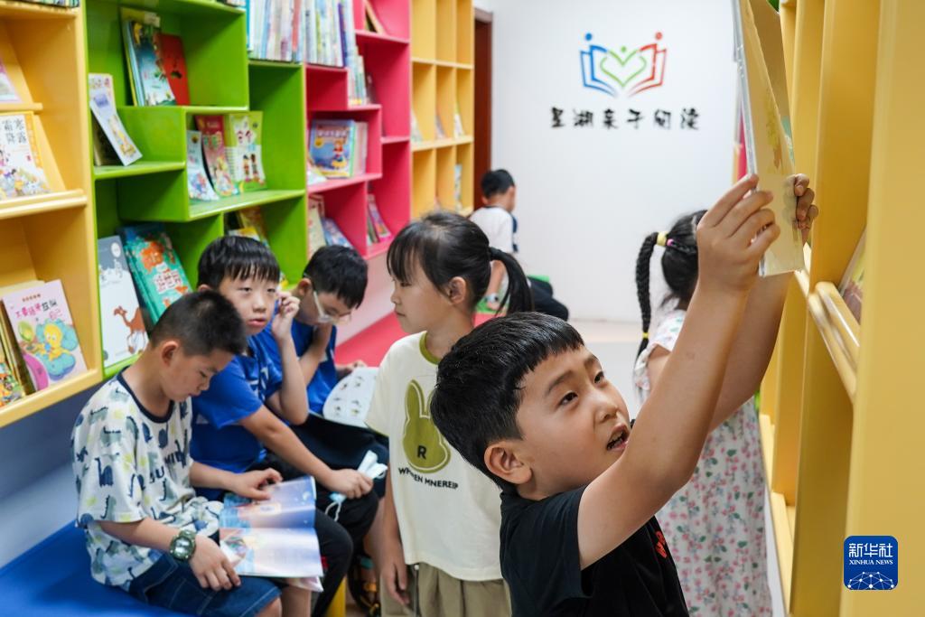 7月19日,在無(wú)棣縣棣豐街道星湖社區服務(wù)中心,孩子們在圖書(shū)室讀書(shū)。