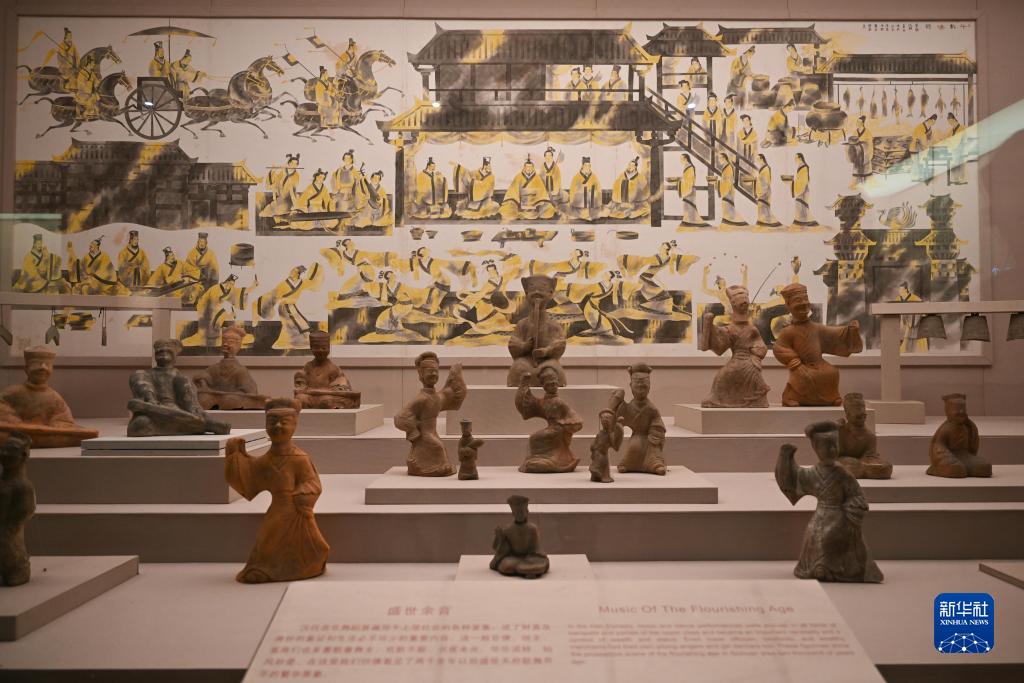 這是7月18日在四川博物院拍攝的盛世余音漢代說(shuō)唱俑。