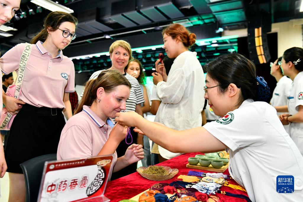 山東省青島市黃島區衛健部門(mén)依托轄區中醫藥診療資源,與中國石油大學(xué)(華東)合作,在國際教育學(xué)院設立沉浸式中醫藥文化體驗中心,定期安排中醫醫護人員為留學(xué)生開(kāi)展中醫診療、中醫茶飲、拔罐、刮痧、八段錦、耳穴壓豆等特色中醫藥診療服務(wù),讓留學(xué)生體會(huì )中醫藥文化的魅力。