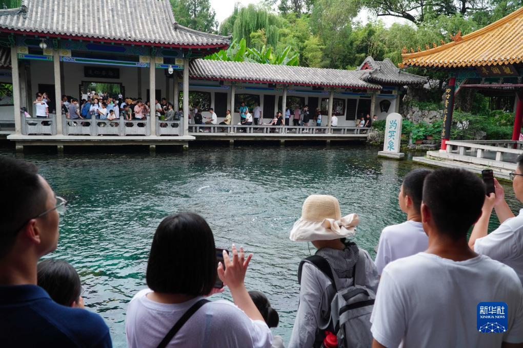 進(jìn)入夏季以來(lái),位于山東省濟南市的趵突泉吸引了大量暑期旅游的游客前來(lái)觀(guān)賞。