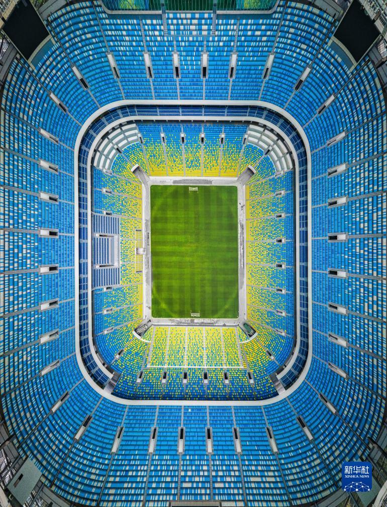 這是鳳凰山體育公園內的專(zhuān)業(yè)足球場(chǎng)(2021年9月1日攝,無(wú)人機照片)。